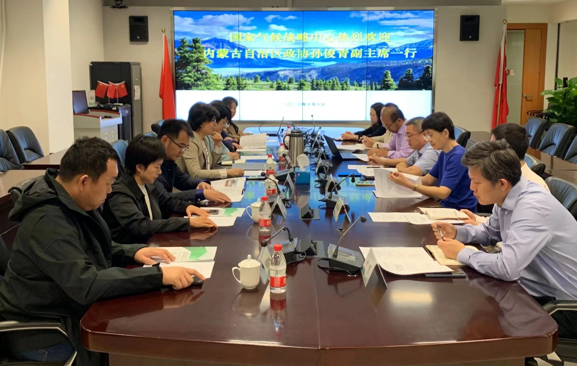2023年10月8日,内蒙古自治区政协副主席、民进内蒙古区委会主委、内蒙古自治区科技厅厅长孙俊青,内蒙古自治区政协常委、民进内蒙古区委会副主委、内蒙古大学副校长杜凤莲及民进内蒙古区委、自治区生态环境厅生态环境低碳发展中心一行7人来国家气候战略中心调研座谈,就森林碳汇价值实现路径研究等开展交流。国家气候战略中心党委书记、主任徐华清及战略规划部、政策法规部、统计核算部、市场机制部、办公室相关负责同志参加座谈。